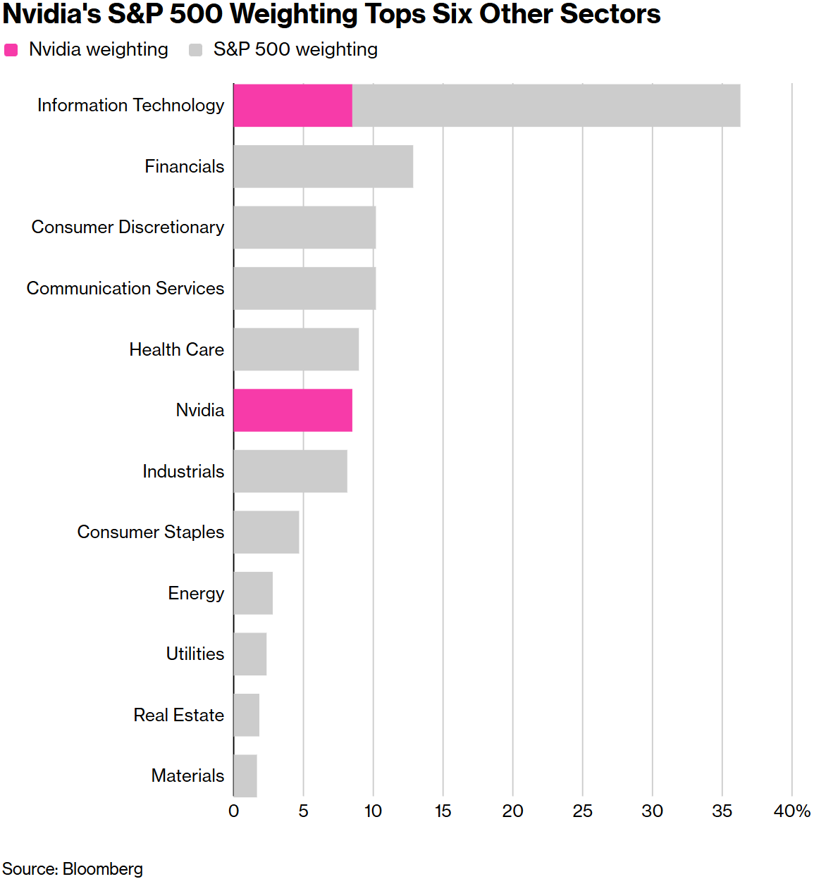 富可敌国!英伟达(NVDA.US)成“5万亿俱乐部”唯一成员,权重超标普500近半公司之和