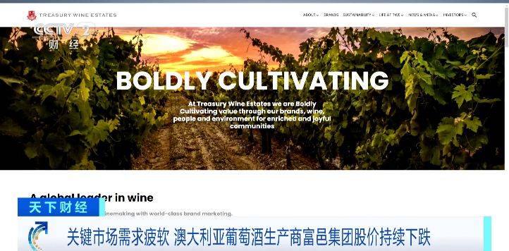 (央视财经《天下财经》)受关键市场需求疲软影响,澳大利亚葡萄酒知名品牌奔富的母公司——富邑 葡萄酒集团股价日前经历大幅下挫并引发停牌,17日该公司股票复牌后,开盘继续下挫,盘中跌幅一度 达到近17%。 新上任不久的集团首席执行官费舍尔表示,目前在美国等关键市场都面临销售增长疲软的问题,这将在 短期内影响公司的业务表现。此外,费舍尔还打算在未来两到三年,每年削减1亿澳元的成本。 据报道,富邑葡萄酒集团于12月1日发布公告称,鉴于美国葡萄酒市场前景趋弱,公司预计将对其美洲 业务计提非现金减值,共计6.87亿澳元(约合人民币32亿元),并可能进一步波及其他资产。此消息一 经发布,富邑股价便开始下挫,并于15日停牌。富邑葡萄酒集团的股价在过去12个月已累计跌超50%。 转载请注明央视财经 编辑:王昕宇 富邑葡萄酒集团17日宣布冻结了一项尚未完成的2亿澳元(约合人民币9.3亿元)的股票回购计划,并表 示正重新评估资本投资计划。在面临关键市场需求疲软挑战之际,该集团宣布将进行包括资产出售和削 减成本在内的重组计划。 ...