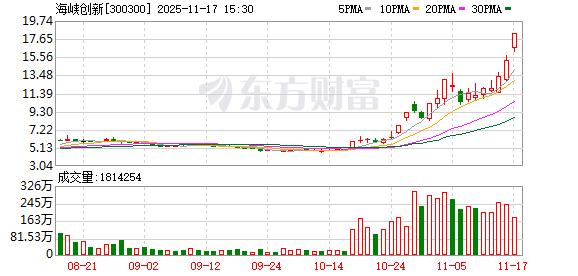 两家上市公司将停牌核查。 海峡创新(300300)11月17日晚间公告,公司股票自2025年10月27日至11月17日价格涨幅为185.89%,股价波动较大,投资者较为 关注,为维护投资者利益,公司将就股票交易波动情况进行核查。经公司申请,公司股票(证券简称:海峡创新;证券代码: 300300)自2025年11月18日开市起停牌,待核查结束并披露相关公告后复牌,预计停牌时间不超过3个交易日。公司提醒广大投资者 注意二级市场交易风险。 公告称,经向公司控股股东等核实,不存在关于公司应披露而未披露的重大事项,也不存在处于筹划阶段的重大事项。同时,公 司及子公司生产经营正常,主营业务目前没有其他重大变化。 截至11月17日收盘,该公司20%涨停,股价报18.24元/股,总市值121.63亿元。公司股价自10月17日至今涨幅约为275%。 同日,平潭发展(000592)公告,公司股票自2025年10月17日至11月17日以来价格涨幅为255.19%,其间于10月20日、10月27日、 10月30日、11月3日、11月5日、11月14日,6次触及股票交易异常波动情形;于11月3日,1次触及股票交易严重异常波动情形。公 ...