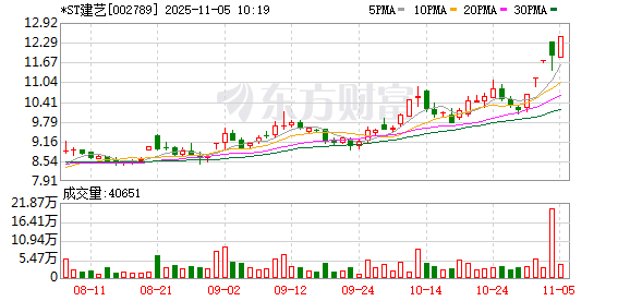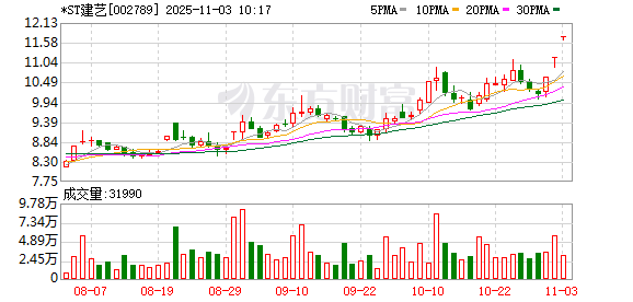 公司发布的三季报数据显示,前三季公司共实现营业收入26.66亿元,同比下降40.37%,实现净利 润-3.42亿元,同比下降8310.42%,基本每股收益为-2.1451元。 据天眼查APP显示,深圳市建艺装饰集团股份有限公司成立于1994年01月03日,注册资本15962.3514万 人民币。(数据宝) *ST建艺盘中涨停,已连收3个涨停板,截至9:32,该股报11.74元,换手率1.96%,成交量307.07万股, 成交金额3598.10万元,涨停板封单金额为1240.95万元。连续涨停期间,该股累计上涨15.78%,累计换 手率为7.82%。最新A股总市值达18.74亿元,A股流通市值18.37亿元。 | 日期 | 当日涨跌幅(%) | 换手率(%) | 主力资金净流入(万元) | | --- | --- | --- | --- | | 2025.10.31 | 4.98 | 3.61 | 31.20 | | 2025.10.30 | 5.03 | 2.25 | 478.14 | | 2025.10.29 | -1.55 | 2.19 | -435.86 | | 2025.10.28 | -1.62 | ...