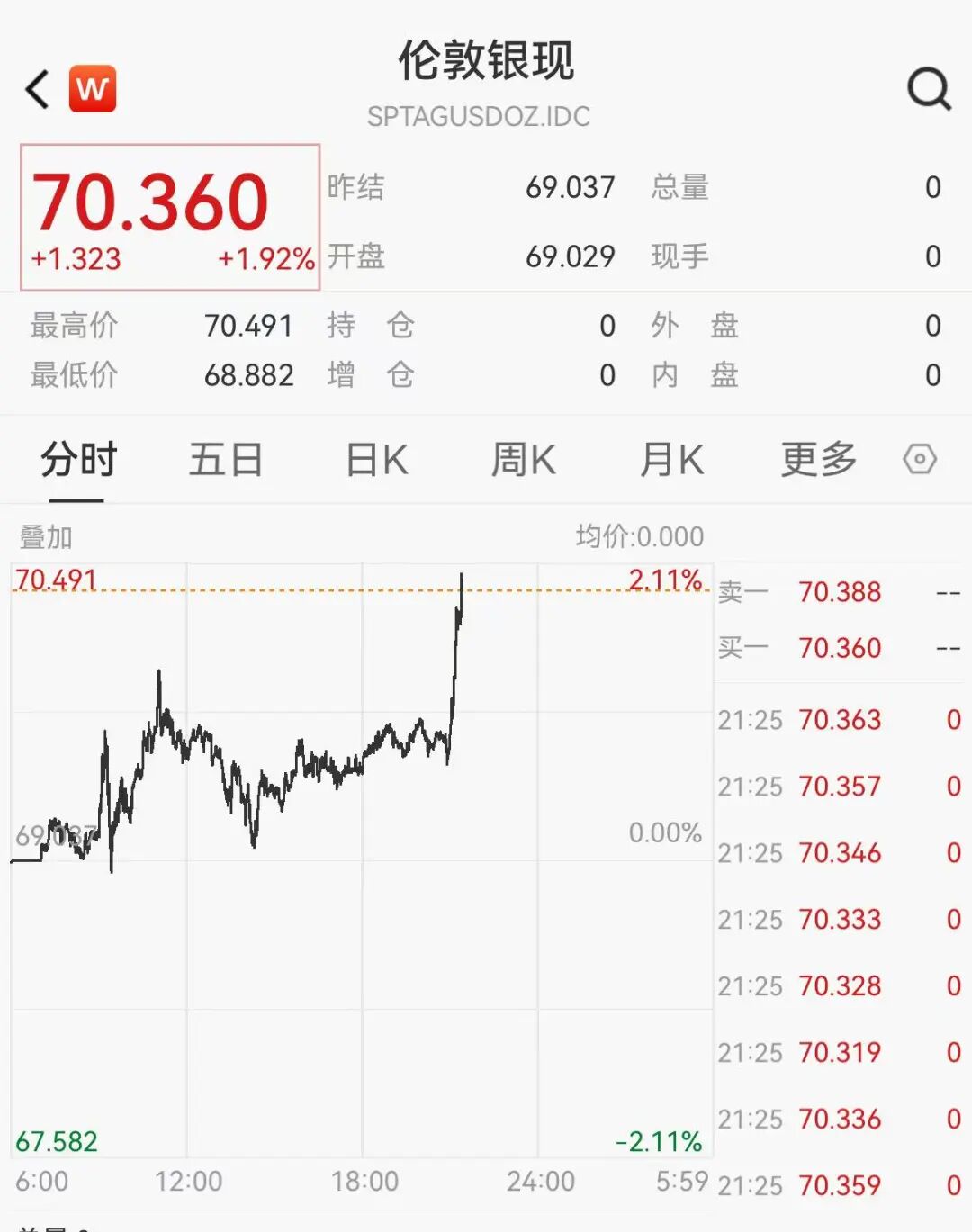 白银突然拉升,突破70美元关口创新高