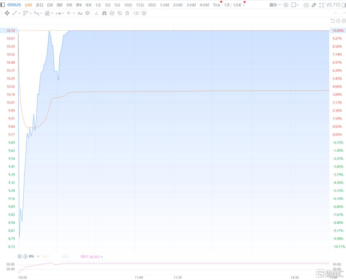 魔幻的大A,总能惊现令人咋舌的惊险与刺激。 周一,高位人气股远大控股"天地天"极限过山车,把一众股民都看的目瞪口呆。 | | | | ■ 000626 分时 多日 日K 周K 月K 季K 年K 1分 3分 5分 10分 15分 30分 1小时 2小时 3小时 4小时 Tick 1天:1分K v | | 显示、◎ ○~ ◎ △ VS F1 | | --- | --- | --- | --- | --- | --- | | | ◎◎◎◎ の の こ の の と の 中 と 、 角 、 。 | | | | ਵਿੱ | | | | | | | DI | | 10.74 | | | | | 103 | | 10.67 | | | | | 9.2 | | 10.59 | | | | | 8.5 | | 10.52 | | | | | 7.7 | | 10.44 | | | | | 6.9 | | 10.37 | | | | | 6.2 | | 10.29 | | | | | 5.4 | | 10.22 | | | | | 4.6 | | 10.14 | | | | | 3.8 | | 10.07 | | | | | 3. ...