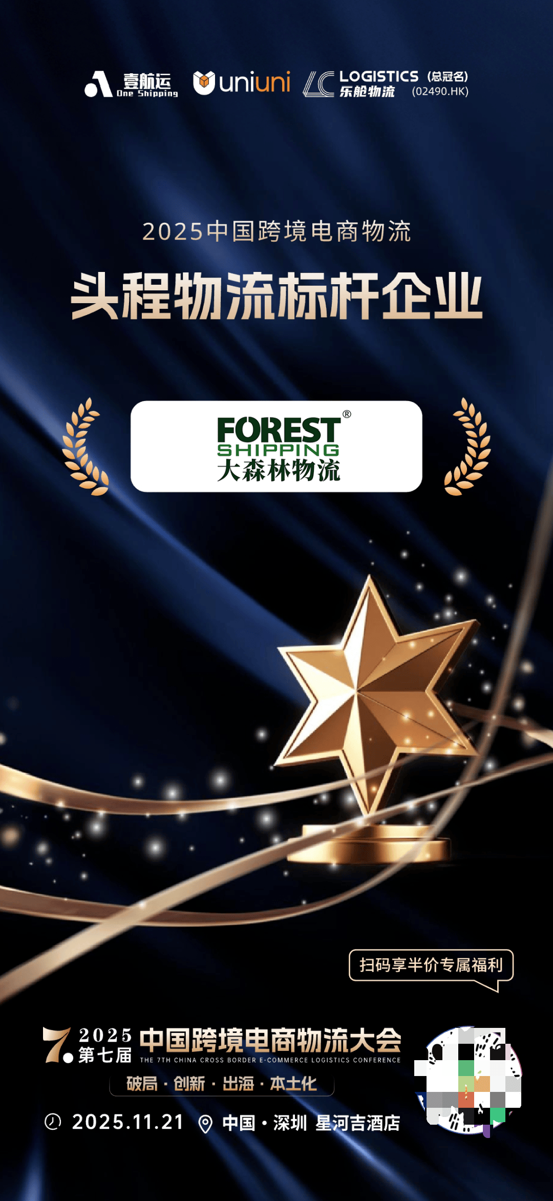 大会概况 - 第七届中国跨境电商物流大会将于2025年11月21日在深圳星河吉酒店举办 [13] - 大会主题为“破局·创新·出海·本土化”,预计汇聚超过1000名行业嘉宾 [13] - 大会将颁发中国跨境电商物流名人堂及多项行业年度大奖 [13] 大会亮点 - 大会将有超过20位重磅嘉宾进行行业前沿分享,包括波士顿BCG、德鲁里、美的、乐歌股份等机构与企业 [14] - 大会设有行业高端资源对接环节,旨在打破信息壁垒,实现资源共享与优势互补 [15] 公司获奖与业务 - 大森林物流在本次大会评选中荣获双奖项,体现了业界对其在跨境电商物流领域实力与贡献的认可 [11][12] - 公司成立于2010年,致力于为跨境电商卖家提供定制化全球物流服务,业务涵盖FBA头程、专线小包及海外仓等 [16] - 公司总部位于深圳,在国内外20多个城市设有分公司,并在海外拥有近20所自营仓库 [18] 公司资质与品牌 - 大森林物流是亚马逊SPN物流服务商、亚马逊FIST承运商和亚马逊SEND承运商 [20] - 公司获得中国物流行业优秀服务商、信用等级AAAA级企业、中国优选品牌等荣誉称号 [20] - 公司成功打造了多个行业品牌,包括大森林物流ForestShipping、拼箱哥、千里鸟等 [20]