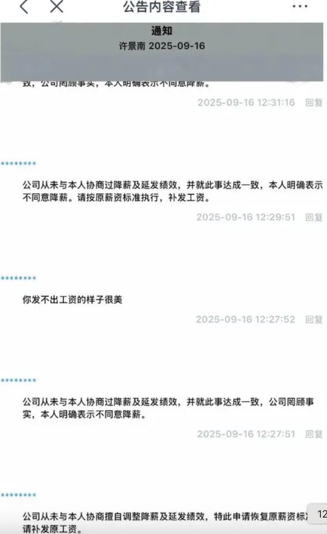 匹克降薪事件似乎有了愈演愈烈的苗头,有网友最新曝光了匹克公司向拒绝降薪的员工发出"警示":不 反思检讨,将停发工资! 01,"降薪风波"恐升级 9月16日,网络上关于匹克"全员降薪"的消息就已传开,9月17日,匹克董事长回应称"降薪不足一成", 其在内部高管会上强调"这次不是全员降薪,是针对负能量的,高薪的这两部分"。 据蓝鲸新闻、智通财经等媒体报道:总部员工工资在5000-10000元之间的,降薪10%;工资在10000- 20000之间的降薪20%;工资20000元以上的降薪30%;直营分公司办公室职员降薪50%。 值得一提的是,媒体证实的有匹克董事长许景南落款的通知文件中提及"针对本次降薪调整,经过充分 意见征集,全体同事均保持理解与支持"。这恰恰成了争议焦点,也为后续的风波升级埋下了导火索。 有受访员工表示,9月11号(发薪日前四天)确实有开会讲过降薪一事并提及降薪的幅度。但当时没有 征求大家同意的环节,会议也不是全员参加。会后没发布正式的文件公告、也未进行一对一沟通,大家 月中发完工资以后董事长才发了那个落款为9月16号的通知。 董事长许景南表示,公司的降薪有流程、有文件,经过反复推敲,并在调薪过程 ...