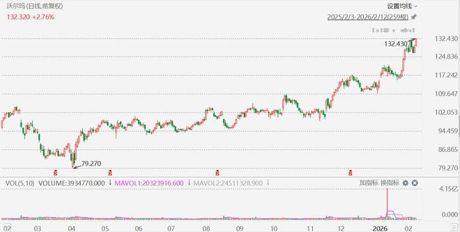 公司股价与市值表现 - 沃尔玛股价盘中上涨近3% 报132.43美元 创下历史新高 [1] - 公司市值再度突破1万亿美元 跻身“万亿美元俱乐部” [1] - 今年以来 沃尔玛股价累计上涨近19% 显著跑赢同期标普500指数约1.5%的涨幅 [1] 市场认可与地位 - 沃尔玛入选2026年格隆汇“全球视野”十大核心资产名单 [1] - “万亿美元俱乐部”通常由大型科技企业主导 沃尔玛的加入凸显其市场地位 [1]