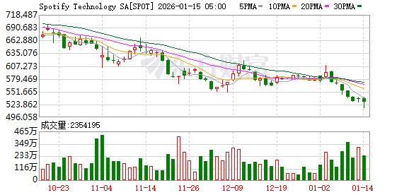 公司股价表现 - 音乐流媒体平台Spotify美股盘前上涨超过4% [1] 公司运营动态 - Spotify计划于明年第一季度上调其美国区服务价格 [1]