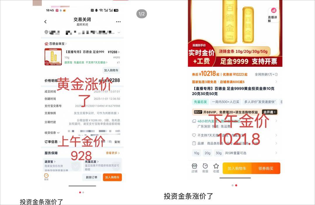 多个品牌投资金条下架或上调售价,9280元涨到10218元