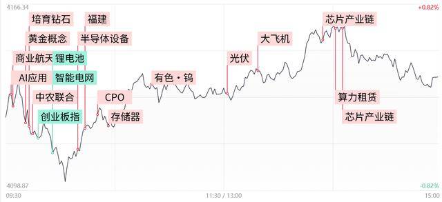 市场整体表现 - 市场探底回升,三大指数集体翻红,创业板指一度涨超1% [1] - 沪深两市成交额2.89万亿元,较上一个交易日缩量3532亿元 [1] - 截至收盘,沪指涨0.18%,深成指涨0.09%,创业板指涨0.71% [1] 行业与板块表现 - 芯片产业链持续拉升,华虹公司创历史新高,亚翔集成、圣晖集成、华天科技涨停 [1] - 贵金属概念延续强势,中国黄金3连板,湖南黄金2连板 [1] - CPO概念表现活跃,源杰科技涨超10%创历史新高,汇绿生态涨停 [1] - 太空光伏概念持续回升,宇晶股份4天3板,赛伍技术3天2板 [1] - 超硬材料概念走强,黄河旋风涨停 [1] - 煤炭、电池等板块跌幅居前 [1] - 电池产业链集体下挫,天际股份、华盛锂电跌超6% [1]
