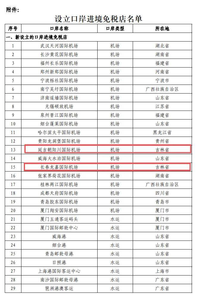 全国41个口岸将新增设进境免税店 延吉机场位列其中