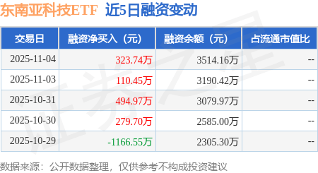 东南亚科技ETF:11月4日融资净买入323.74万元,连续3日累计净买入929.16万元