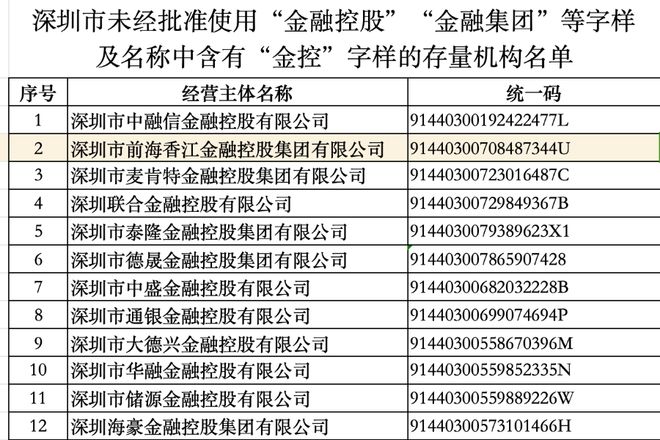 553家公司被点名 深圳金融监管局:名称不能包含“金控”字样