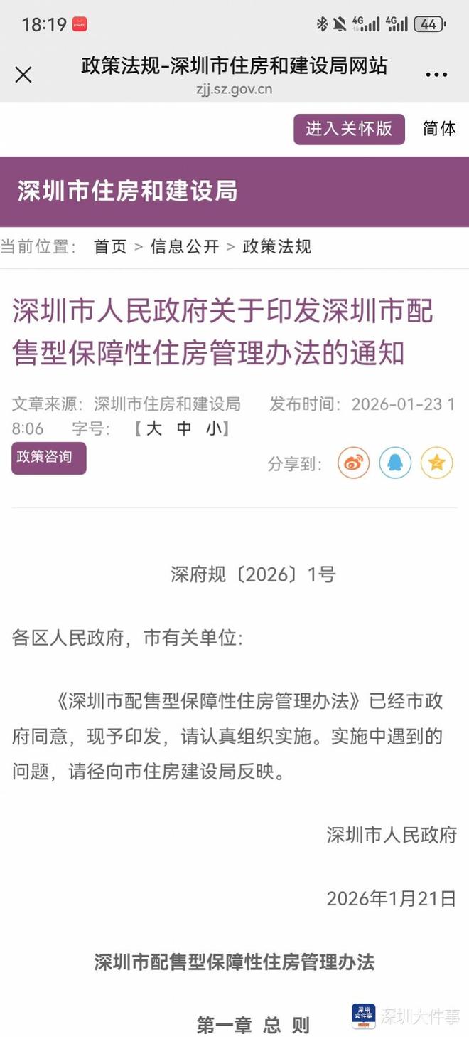 政策发布与施行时间 - 深圳市于1月23日发布《深圳市配售型保障性住房管理办法》 [1] - 该《办法》将于2026年3月1日起正式施行 [1] 政策框架与核心定义 - 《办法》共包含5章37条,明确了申请条件、配售流程、封闭管理及使用监管等内容 [4] - 配售型保障性住房是政府提供政策支持,限定面积、价格和处分权利,面向符合条件的住房困难工薪群体配售的住房类型 [4] - 该类型住房实行现房配售,并以小户型为主 [4] 定价机制 - 配售价格确定原则为覆盖项目划拨土地成本、建安成本、适度合理利润及相关税费,并适当考虑住房供需关系和工薪群体支付能力 [4] - 具体项目的配售价格将在项目配售通告中载明 [4] 申请资格条件 - 申请人需满足深圳户籍、在本市无自有住房且在申请受理日前3年内未在本市转让或离婚分割过自有住房等条件 [4] - 申请人需在本市缴纳社保满5年,具备规定人才引进迁户核准条件的,社保缴纳年限要求为满3年 [4] - 市或区住房主管部门可结合项目具体情况调整部分申请条件,经市住房主管部门同意后在项目配售通告中载明 [4] 封闭管理与流转规定 - 实施严格封闭管理,禁止以任何方式变更为商品住房 [5] - 签订买卖合同满3年后,购房人可申请在信息平台进行封闭流转,面向符合条件的对象转让,转让价格由双方协商确定 [5] - 市住房主管部门可通过参考价格上限等方式规范转让行为 [5] - 发生回购时,回购价格计算公式为:原购买价格 × (1 - 年折旧系数 × 建筑物已使用年限),其中年折旧系数取1% [5]