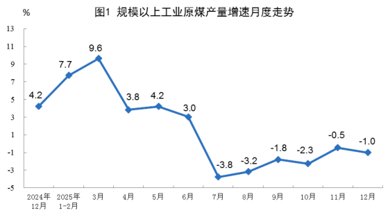 国家统计局:2025年中国原煤产量48.3亿吨,同比增长1.2%