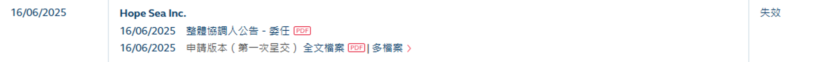 Hope Sea Inc.港股IPO招股书失效