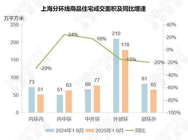 来源:市场资讯 (来源:上海楼市情报) 2025年8月25日,上海六部门联合印发《关于优化调整本市房地产政策措施的通知》,被市场称为"825 新政",开启上海新一轮救市。 新政内容包括调减外环外限购、优化公积金政策、调整信贷政策和完善个人住房房产税等四大维度。政 策出台后首月,上海市外环外新房成交占全市的比重达73.45%,创下年内新高。 然而,政策效应未能持续。今年10月,上海新房市场成交面积环比下降22.7%,呈现高位回落态势。市 场在政策效应集中释放后,再现疲态。 01 上海楼市分化明显! 上海"825新政"救市意图明显,旨在通过精准降低刚需和改善型需求的购房成本,激活市场。 政策刺激下,上海楼市呈现出鲜明的分化特征。 高端项目表现尤为抢眼。上海壹号院以217.8亿元的销售额领跑市场,金陵华庭、翡雲悦府等项目紧随 其后。内中环、中外环成交量分别同比上涨24%、18%,成交金额分别上涨22%、27%。 与核心区形成鲜明对比的是,外围区域市场承压明显。今年1-3季度,郊环外区域去化周期拉长至36个 月。外环外库存高企,去化压力巨大。 二手房市场是观察楼市真实状况的重要窗口。 政策仍有优化空间!未来… 面对当 ...