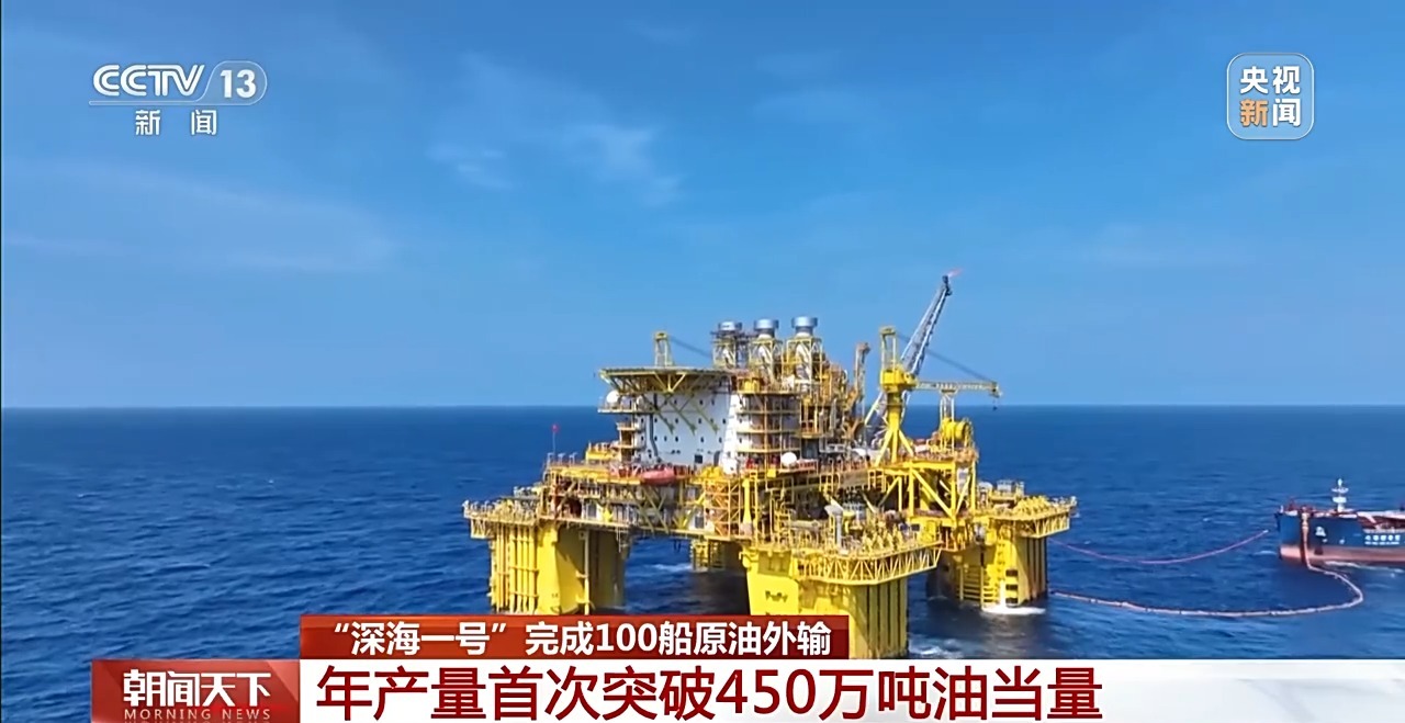 1月2日,记者从中国海油获悉,我国海上最大气田"深海一号"近期完成投产以来的第100船原油外输工作,2025年气田年产油气量突破450万吨油当量,与陆 地中型油田产量规模相当,标志着我国深海气田生产运维技术已经达到世界先进水平。 0:00 "深海一号"大气田最大作业水深超1500米,地层最高温度达到138摄氏度,天然气探明地质储量超1500亿立方米,分两期项目开发建设,核心生产设施"深海 一号"能源站和"四星连珠"平台群,均具备基本的油气加工处理能力,能在海上就地完成天然气和原油气的分离和外输。 中国海油"深海一号"气田生产监督 尹燕波:我们通过海底管道和油轮将油气输送到陆地。目前,气田每天会产出1500万立方米的天然气和超过1600吨的凝 析油。投产以来,气田已累计完成了100船次凝析油外输作业任务,累计生产油气近1400万吨油当量。 责编:陈菲扬、李萌 总台央视记者 张伟:随着外输油轮"北海新希望"号驶离平台,"深海一号"已完成超65万吨的凝析油外输任务,年产油气量首次突破450万吨油当量。 "深海一号"气田是我国迄今为止自主成功开发的作业水深最深、地层温压最高、勘探开发难度最大、年产气量最大的深水气田。 ...