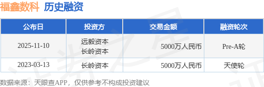 【投融资动态】福鑫数科Pre-A轮融资,融资额5000万人民币,投资方为远毅资本、长岭资本等