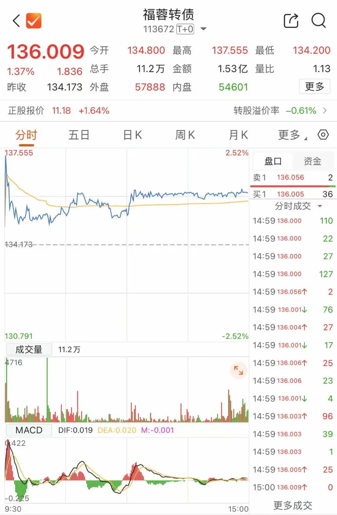 1月23日,是福蓉转债、环旭转债的最后交易日。福蓉转债、环旭转债1月22日收盘价分别为136.009元/张和170.019元/张,如果投资者不及时操作,可能 分别亏损超26%和40%。此前,英特转债部分持有者就因未及时操作导致亏损超34%。 | | | 福蓉转债 | | | ﻊ | | | | --- | --- | --- | --- | --- | --- | --- | --- | | | | | 113672 T+0 ▼ | | | | | | 136.009 37 | | 134.800 最高 | | 137.555 最低 | 134.200 | | | | 1.37% | 总手 1.836 | 11.2万 金额 | | 1.53亿 量比 | | | 1.13 | | 昨日 | 134.173 外盘 | 57888 内盘 | | 54601 | | 更多 | | | 正股报价 11.18 +1.64% | | | | | 转股溢价率 -0.61% > | | | | 分时 | 五日 | 日K | 周K | 月K | 更多, ◎ | | | | 137.555 | | | | 2.52% | | | ...