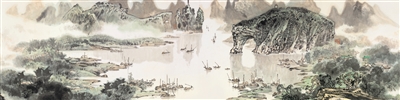 山水甲天下的桂林、风光旖旎的漓江,是中国画家的重要创作灵感和素材。20世纪以来,包括齐白石、 徐悲鸿、黄宾虹、关山月等知名画家,以不同表现方式描绘了漓江的盎然诗意。沿着一代代前辈开拓的 创作道路,当代广西形成了以描绘漓江等广西秀美山水为特色的漓江画派。 作为漓江画派领军人物,黄格胜创作于1985年的《漓江百里图》是漓江画派的重要代表作之一。日 前,"漓水春秋——黄格胜《漓江百里图》创作40周年桂林特展"在广西桂林拉开帷幕。这幅长达200 米、全景式展现漓江山水的巨作,时隔数十载后重回"故里",与观众展开了一次跨越时空的艺术对话。 百里漓江入画图 黄格胜1950年出生于广西鹿寨县,从小在桂林长大,曾任中国美术家协会副主席、广西艺术学院院长、 漓江画派促进会会长。展览现场,回忆起当年创作《漓江百里图》的初衷时,黄格胜表示:"这幅画源 于无意间突然迸发出的一个念头。" 1982年,黄格胜接到中国旅游出版社的邀约,请他以国画形式绘制桂林旅游线路图。站在漓江边,他蓦 然发觉,此前以漓江为主题的画作中,竟无一幅全面表现漓江风光的大型长卷。为了填补这个空缺,黄 格胜决定创作《漓江百里图》。 "后来的3年,我成了漓江边上执着 ...