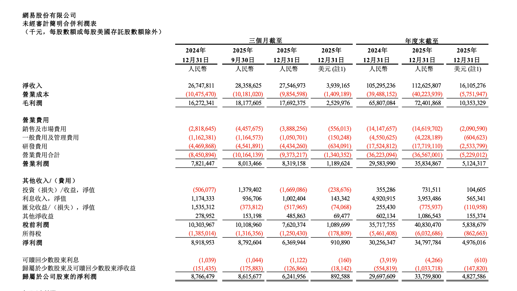 网易发布2025年Q4财报:营收持续稳健,《燕云十六声》全球用户突破8000万