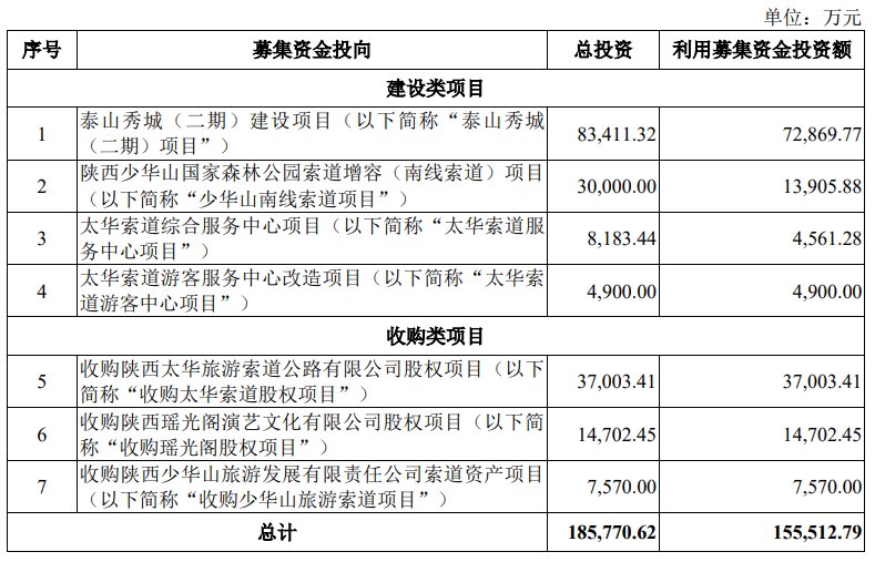 IPO审核状态与募资计划 - 陕西旅游上交所主板IPO审核状态变更为“提交注册”,中金公司担任保荐机构,拟募资15.55亿元 [1] 公司业务概况 - 公司成立于2011年4月,核心业务为旅游演艺、旅游索道和旅游餐饮,是“景区+文化旅游”领域的龙头企业之一 [1] - 旅游演艺业务拥有《长恨歌》、《12·12 西安事变》、《泰山烽火》等知名作品;旅游索道业务运营华山景区西峰索道、华威滑道及少华山奥吉沟索道;旅游餐饮业务以唐乐宫剧院式餐厅为特色 [2] - 公司采用线上线下结合的直销与代销模式,客户主要为旅行社、OTA及散客 [2] 财务表现 - 公司2017年至2024年主营业务收入的年均复合增长率近15%,净利润的年均复合增长率超20% [3] - 2022年至2024年,营业收入从2.32亿元增长至12.63亿元,净利润从-1.02亿元增长至6.22亿元 [4] - 2025年1-6月,公司实现营业收入5.17亿元,净利润2.47亿元 [4] 募集资金用途 - 募集资金总额15.55亿元,计划投向7个项目,包括4个建设类项目和3个收购类项目 [4] - 主要建设类项目为泰山秀城(二期)项目(拟投入募集资金7.29亿元)和少华山南线索道项目(拟投入募集资金1.39亿元) [4] - 主要收购类项目为收购陕西太华旅游索道公路有限公司股权(拟投入募集资金3.70亿元)和收购陕西瑶光阁演艺文化有限公司股权(拟投入募集资金1.47亿元) [4]
