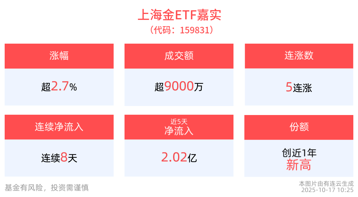 上海金ETF嘉实(159831)连续4日上涨,机构:国际金价具备进一步上涨空间