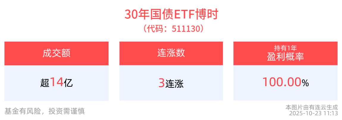 债市逐步回暖,30年国债ETF博时(511130)红盘上扬,连续3日获资金净流入