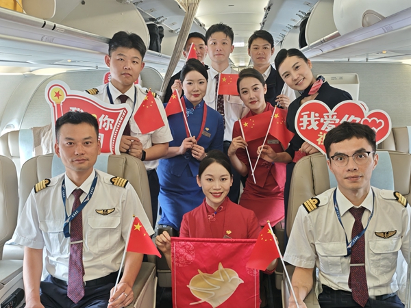 中国民航网讯:万米高空绘盛景,蓝天之上贺华诞。10月1日在MU5221厦门—昆明的航班上,东航厦门 分公司开展以"云端颂华诞•长空贺祖国"为主题的航班活动,与旅客一同在万米高空抒发对祖国的热爱 与祝福。 登机口,乘务员身穿特色旗袍手持鲜艳国旗,以热情真诚的笑容迎接旅客;客舱内,鲜艳的小国旗与节 日装饰交相辉映,瞬间点燃了旅客的爱国热情。餐饮服务结束后,伴随着节日广播,乘务员为旅客送上 精心准备的小国旗,奉上国庆特色饮品以及东方韵味十足的"东航那杯茶"。红色氛围与温情互动交织, 专业服务与家国情怀相融共鸣,大家纷纷手持小国旗合影留念,让每张照片都定格着对祖国的深情。云 端服务落地生花,随着航班的抵达,旅客们带着这份云端祝福走向城市的大街小巷,让节日的喜悦与自 豪在更广阔的天地中延续。 此次主题航班活动不仅展现了东航厦门分公司"四精"服务理念,更以云端之上的深情告白,为祖国76周 年华诞献上最真挚的贺礼。东航厦门分公司将继续践行"四精"服务理念,坚守匠心,护航每一位旅客的 云端之旅。(东航厦门分公司供稿供图)(编辑:李季威 校对:李海燕 审核:韩磊) ...