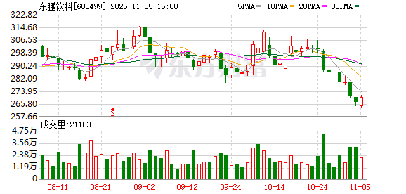 证券时报·数据宝统计显示,东鹏饮料今日收盘价为269.80元,上涨1.12%,日换手率为0.41%,成交额 为5.70亿元,全天主力资金净流入1572.10万元,近5日该股累计下跌5.66%,近5日资金合计净流入 1875.44万元。 两融数据显示,该股最新融资余额为4.26亿元,近5日增加5717.42万元,增幅为15.52%。 据天眼查APP显示,东鹏饮料(集团)股份有限公司成立于1994年06月30日,注册资本52001.3万人民币。 (数据宝) 东鹏饮料11月5日大宗交易平台共发生2笔成交,合计成交量33.87万股,成交金额8132.87万元。成交价 格均为240.12元,相对今日收盘价折价11.00%。 进一步统计,近3个月内该股累计发生7笔大宗交易,合计成交金额为6.36亿元。 (文章来源:证券时报网) 11月5日东鹏饮料大宗交易一览 | 成交量 | 成交金额 | 成交价 | 相对当日收盘 | | | | --- | --- | --- | --- | --- | --- | | (万 股) | (万元) | 格 (元) | 折溢价(%) | 买方营业部 | 卖方营业部 | | 25.40 | 6 ...