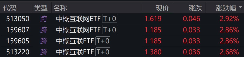 港股全天大涨,中概互联网ETF、中概互联ETF涨近3%