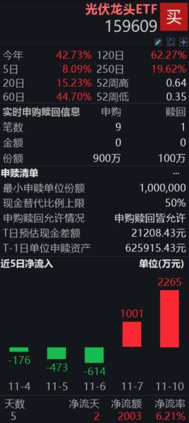 光伏龙头ETF(159609)盘中资金净申购800万份,连续2日资金净流入合计超3200万;新举措:促进新能源消纳