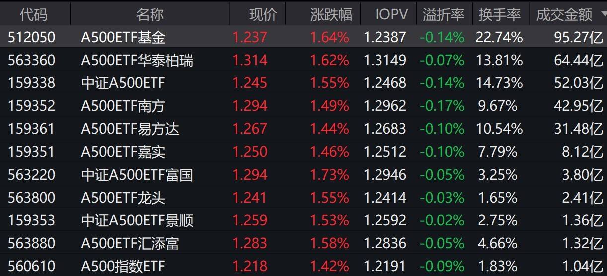 市场早盘高开高走,中证A500指数上涨1.63%,2只中证A500相关ETF成交额超64亿元
