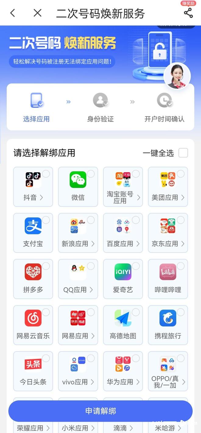 二次号码焕新服务升级   - 电信运营商在工信部指导下全面升级"二次号码焕新"服务 支持200多款常用互联网应用一键解绑 覆盖微信 抖音 淘宝 美团 支付宝 京东等头部应用 [1]   - 用户申请解绑后 互联网企业通常在5天内完成处理并反馈结果 运营商在号码注销和过户环节主动提醒用户解绑互联网应用 [1]     运营商主动焕新批量解绑   - 中国移动对即将投放的回收号码提前批量推送给互联网应用方 在重新放号前完成解绑 [2]   - 中国联通对准备投放的回收号码批量解除前任机主与互联网账号的历史绑定关系 确保号码"干净" [2]   - 部分运营商的批量解绑服务已支持100多款App 覆盖主流应用 [3]     服务范围说明   - "二次号码焕新"服务仅针对解绑开户前绑定的互联网应用 当前用户解绑自己注册的应用需联系互联网应用方处理 [3]