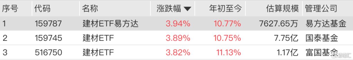 建材板块走高,建材ETF易方达、建材ETF涨超3.6%