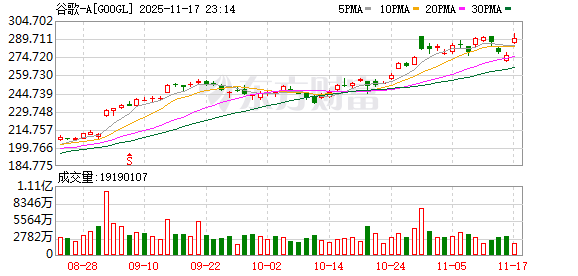 谷歌A开盘大涨。 当地时间11月17日,美股三大股指低开高走,截至发稿,道指涨0.09%,标普500指数涨0.10%,纳指涨0.23%。 | 道琼斯指数 | 47188.48 | +0.09% | | --- | --- | --- | | .DJI | | | | 标普500指数 | 6740.86 | +0.10% | | .SPX | | | | 纳斯达克综合指数 | 22952.88 | +0.23% | | .IXIC | | | 本周四,美国劳工部将公布9月份的非农就业报告,这份数据对美联储来说将具有不容忽视的重要性。 据CME"美联储观察",美联储12月降息25个基点的概率为44.4%,维持利率不变的概率为55.6%。美联储到明年1月累计降息25个基点的概率为48.6%,维 持利率不变的概率为34.7%,累计降息50个基点的概率为16.7%。 值得注意的是,一个月前,市场预期12月降息的概率高达95%。目前,美银和野村已经在研报中预计,美联储将在12月按兵不动。 市场分析认为,在官方数据发布因为政府停摆而一度中断的这段时间里,不确定性明显上升。一些美联储官员担心在"数据盲飞"的情况下做决策,因为 ...