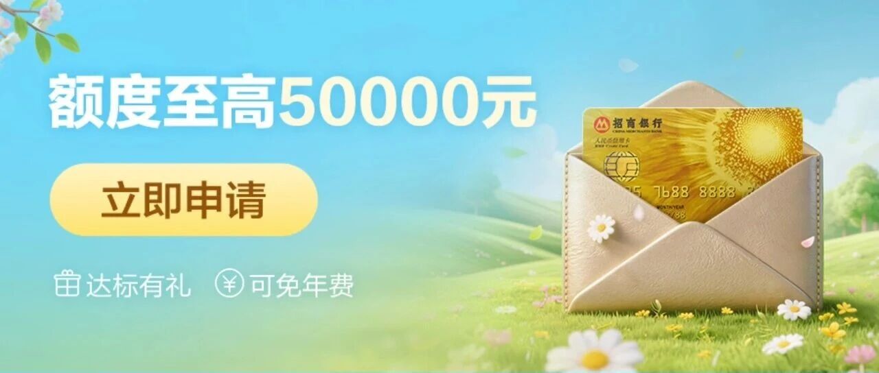 招行信用卡新户专享,至高额度50000元,还有大牌好礼送,点击申请>>