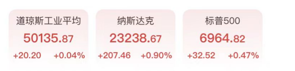 美股市场整体表现 - 周一美股三大股指全线上涨 道琼斯工业平均指数上涨20.20点 涨幅0.04% 收于50135.87点 连续第二天站上50000点并创下历史新高 纳斯达克指数上涨0.90% 收于23238.67点 标普500指数上涨0.47% 收于6964.82点 [1][2][6] - 科技股企稳回升 标普500软件服务指数上涨1.07% 该板块在上周经历惨痛下跌后收复部分失地 [1] - 中长期美债收益率走低 基准10年期美债收益率下跌0.8个基点至4.197% 2年期美债收益率下跌1.1个基点至3.482% [1][7] 科技股与半导体行业动态 - 明星科技股涨多跌少 微软上涨3.13% Meta上涨2.41% 特斯拉上涨1.51% 谷歌上涨0.40% 亚马逊下跌0.76% 苹果下跌1.17% [3] - 费城半导体指数上涨1.42% 人工智能芯片巨头英伟达股价上涨2.50% 收于190.040美元 [3][4] - 市场对人工智能相关股票持谨慎态度 投资者关注英伟达本月晚些时候发布的财报 对其资本支出计划带来的可衡量收益要求越来越高 [3] - 存储板块走弱 美光科技下跌2.84% 闪迪下跌2.43% 有消息称英伟达或将把美光HBM4排除在Rubin架构的首年量产之外 [4] 重点公司事件与评级变动 - 软件公司甲骨文股价大涨9.64% 创去年12月以来最大盘中涨幅 戴维森投行将其股票评级从“中性”上调至“买入” [1][4] - 零售巨头克罗格股价上涨3.85% 该公司任命沃尔玛前高管格雷格・福兰为首席执行官 [5] 中概股表现 - 纳斯达克中国金龙指数上涨0.12% 成分股中百度上涨0.71% 网易上涨0.50% 拼多多上涨0.32% 阿里巴巴上涨0.30% 京东下跌0.21% [1][5] 人工智能投资与市场情绪 - 主要科技公司为争夺人工智能主导地位计划巨额资本支出 亚马逊、谷歌、Meta和微软计划总支出约6500亿美元 市场对此感到不安 [6] - 投资者对高昂的人工智能投资成本及回报来源持谨慎态度 科技股估值从相对过去五年均值溢价17%回落至折价8% [6] 宏观经济与关键数据前瞻 - 投资者静待新一轮关键数据出炉 包括因政府部分停摆而推迟发布的1月非农就业报告以及1月消费者价格指数 [1][7] - 市场目前预计美联储今年首次降息将在6月 [7] - 纽约联储调查显示 美国消费者对未来一年通胀的预期中值从12月的3.4%降至1月的3.1% 对未来三年和五年的通胀预期均维持在3%不变 [7] 大宗商品市场 - 国际油价上涨 WTI原油近月合约上涨1.27% 报64.36美元/桶 布伦特原油近月合约上涨1.45% 报69.04美元/桶 市场关注美伊局势进展 [8] - 贵金属市场强劲反弹 COMEX黄金期货上涨2.01% 报5050.90美元/盎司 白银期货上涨6.95% 报82.065美元/盎司 盘后涨幅进一步扩大至8%以上 [8]