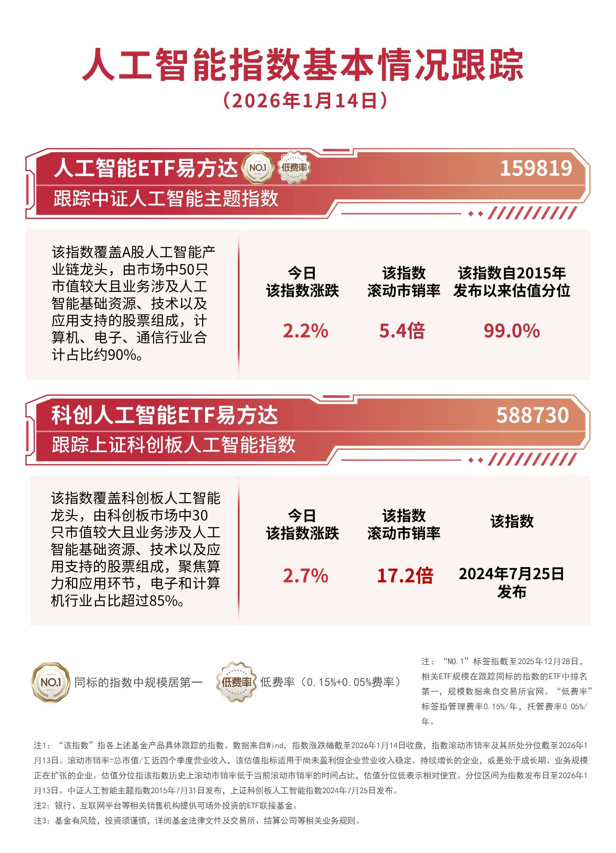 科技方向集体反弹,关注人工智能ETF易方达(159819)、科创人工智能ETF易方达(588730)投资机会