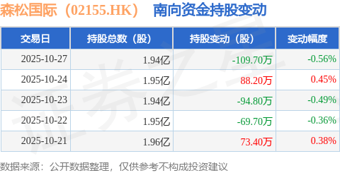 森松国际(02155.HK):10月15日南向资金减持191.4万股