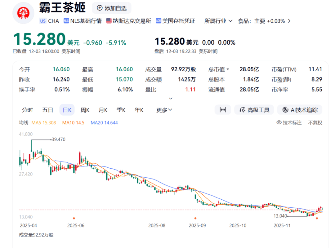 霸王茶姬上市7个月,市值每天蒸发1个亿
