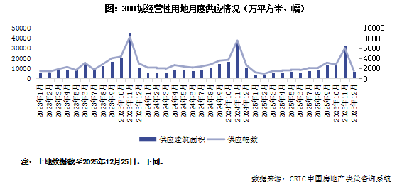 克而瑞地产研究:2025年12月土地成交规模如期迎来环比回升 同比降幅有所缩小