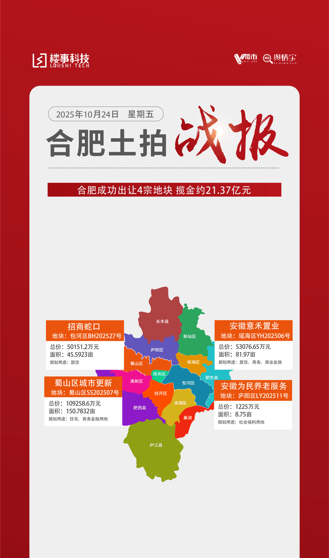 揽金21.37亿!合肥成功出让4宗地块!意禾、招商、蜀山城更拿下核心优质地块