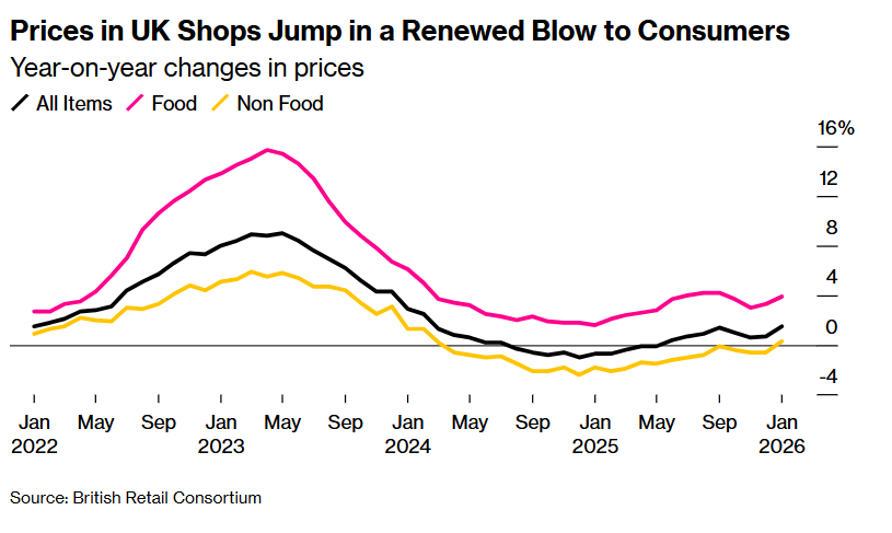 从食品到家具全线抬价! 英国“商店通胀”升至近两年最高位 央行按兵不动预期强化