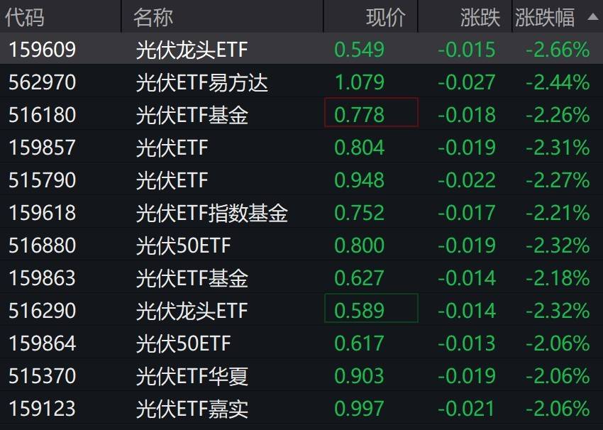 光伏概念股走弱,相关ETF跌超3%。