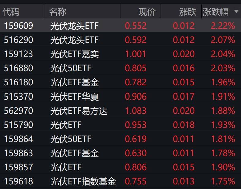 光伏概念股走强,多只光伏相关ETF涨约3%