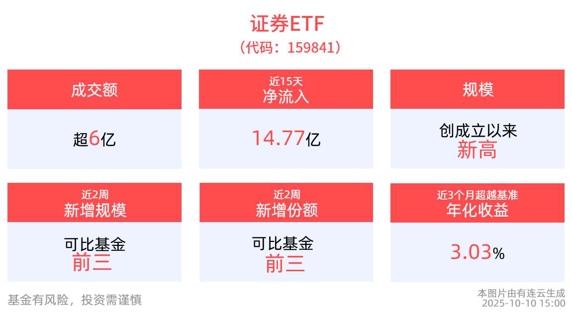 “黄金坑”有望再现?“准百亿”的证券ETF(159841)最新单日“吸金”再超1亿元,规模创新高!机构研判长期不改A股慢牛趋势