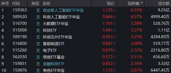 ETF复盘资讯|王者归来!算力+应用全爆发!创业板人工智能ETF跳空暴涨6.53%,科创AI放量反弹!全“芯”589190同步猛攻