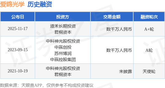 爱鸥光学是一家需求牵引创新驱动的高科技企业,创始团队来自上海交大、天津大学等知名高校与光学 行业知名企业。爱鸥光学秉承"AI Optics, makes optics smart"的理念,以嵌入智能算法的高速 ADC/FPGA/DAC硬件架构为核心平台,结合先进的光学设计,将实时智能控制应用到光学领域,为工 业和科研客户提供独特的技术解决方案和产品。公司产品包括智能飞秒激光器、智能控制板卡、光谱展 宽模块等,可广泛应用于精细加工、精密测量、高能激光、激光通信等领域。公司核心技术曾获2019年 度全球光学重要进展以及中国光学十大进展。 数据来源:天眼查APP 以上内容为证券之星据公开信息整理,由AI算法生成(网信算备310104345710301240019号),不构成 投资建议。 证券之星消息,根据天眼查APP于11月17日公布的信息整理,杭州爱鸥光学科技有限公司A+轮融资, 融资额数千万人民币,参与投资的机构包括道禾长期投资,君桐资本。 | 公布日 | 投资方 | 交易金额 | 融资轮次 | | --- | --- | --- | --- | | 2025-11-17 | 道禾长期投资 | 数千万人民币 | ...