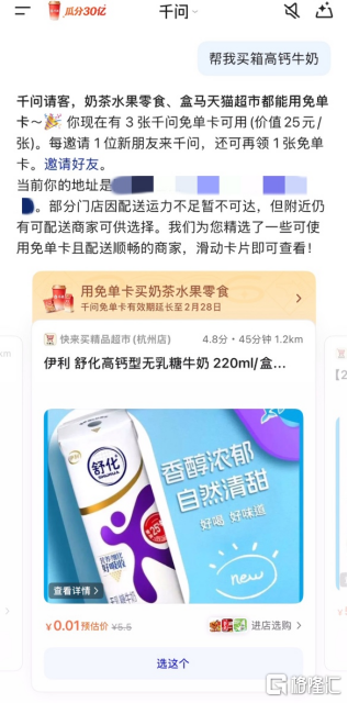 千问免单卡还能下单大润发、沃尔玛,一句话年货送到家