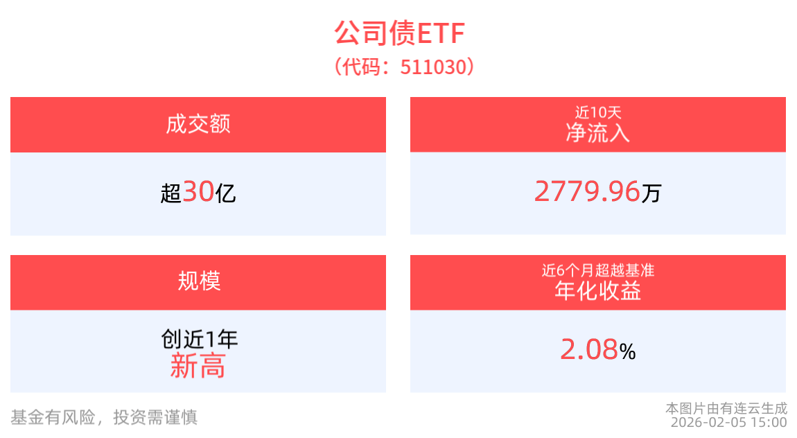 成交额超30亿元,公司债ETF(511030)近10个交易日净流入2779.96万元